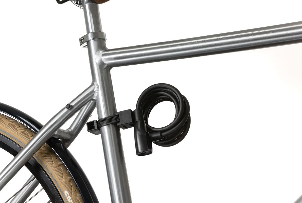 Тази кабелна вело-ключалка е удобна за потребителя, тъй като не е необходимо да завъртате ключа си, когато искате да я заключите. В комплекта има монтажна скоба за рамката, с която може да съхранявате спиралата когато не се използва.