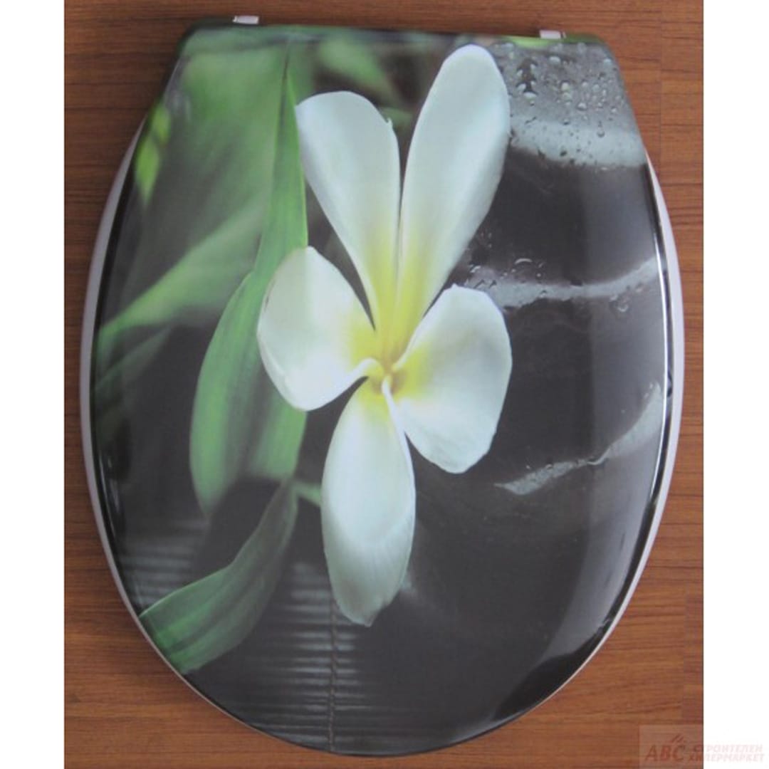 Тоалетна седалка от дуропласт с механизъм за бавно затваряне. Размери: 45,5*37,3 см. С единичен цветен принт. С метални планки за затваряне. Производител: Inter Ceramic.