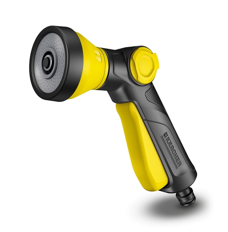 Мултифункционалният пистолет е много подходящ за поливане на множество различни растения с различни потребности на вода. Пистолетът има 3 форми на струята: дъжд, точкова и конусовидна. Лесно поливате цветя и лехи (дъжд и конусовидна стуя), но също така можете да отстраните по-едри замърсявания от тераси и градински мебели (точкова струя). Това прави пистолета подходящ както за напояване, така и за почистване. Освен това пистолетът разполага с функция за заключване на спусъка, която осигурява комфорт при продължително поливане. Ергономичният регулиращ вентил се обслужва с една ръка като количеството вода се напасва според потребността. Освен това: накрайниците и пистолетите за поливане на Kärcher са съвместими с всички клик-системи и се свързват лесно с градинските маркучи.