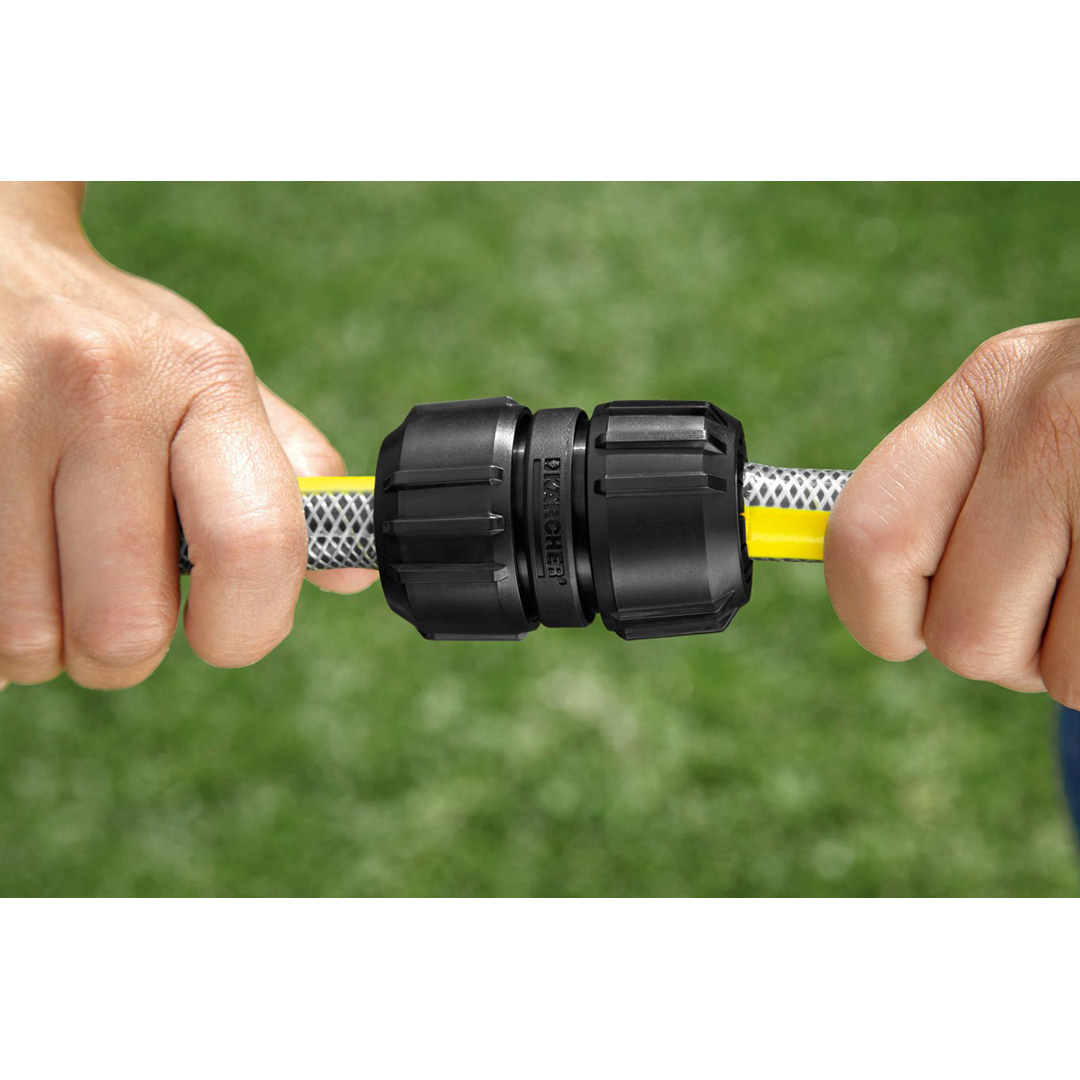 Интактните кранови връзки, куплунгите за маркучи и самите маркучи са основата на ефективното напояване. Затова Керхер предлага цялостна серия от аксесоари за свързване, откачане и поправка на системи за напояване. Например универсалния репаратор за маркучи. Той е универсално приложим за всички градински маркучи и убеждава с ергономичен дизайн за лесна употреба. Идеалното решение за свързване или поправка на две парчета маркуч. Универсалният куплунг е съвместим с трите най-популярни диаметри на маркучи и с всички клик-системи на пазара.