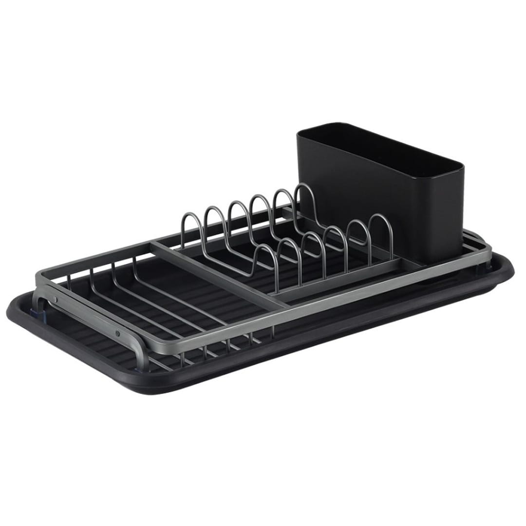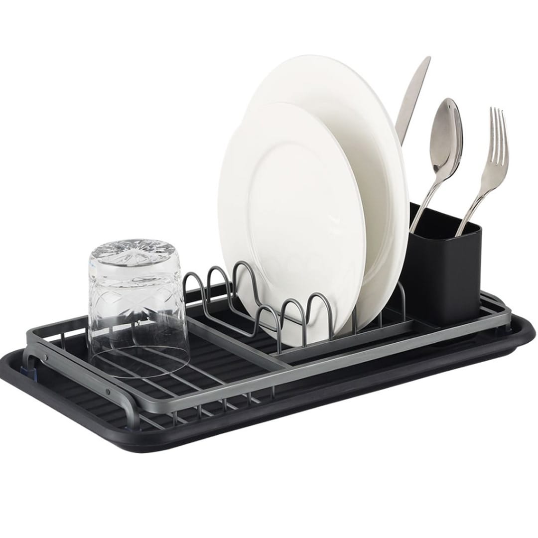 Висококачествена рамка от алуминий, устойчива на ръжда Сваляема поставка за прибори с три отделения Удобна табла за отцеждане Нехлъзгащите се крачета правят сушилника стабилен върху кухненски плотове