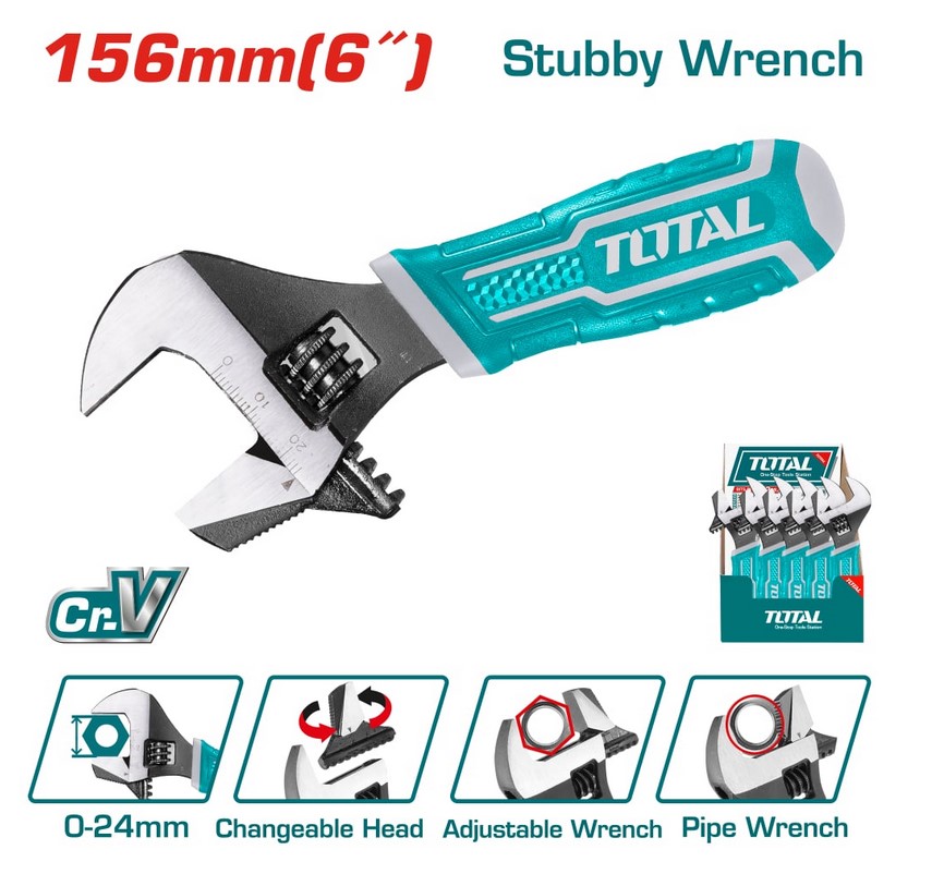 Ключ гаечен раздвижен TOTAL THT1016S, 2 в 1, 156 мм