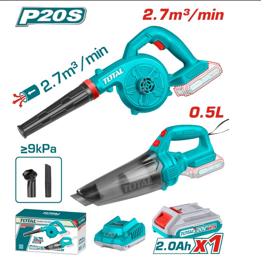 Комплект акумулаторни прахосмукачка и издухвател TOTAL TOSLI240998E, 1 x 2 Ah