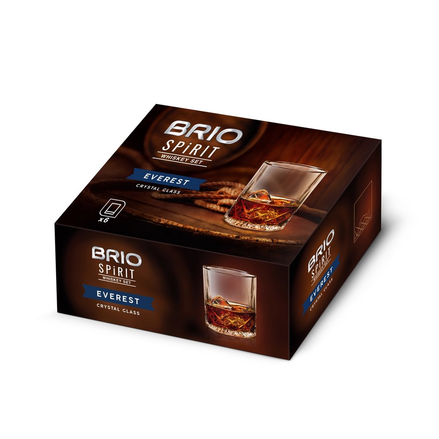 Комплект чаши за уиски Brio Spirit Everest – изработени от кристално стъкло с красив релефен дизайн, създадени да направят пиенето на уиски наслада за всички сетива.