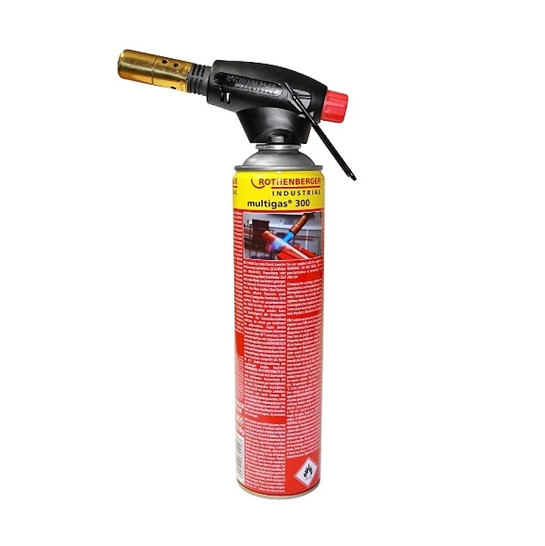 Горелка за пропан-бутан Rofire Piezo 1950 на ROTHENBERGER, в комплект с флакон Multigas 300 за еднократна употреба.