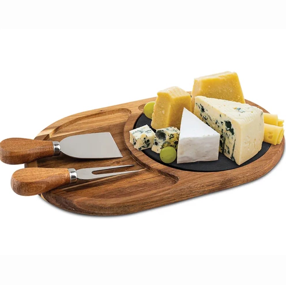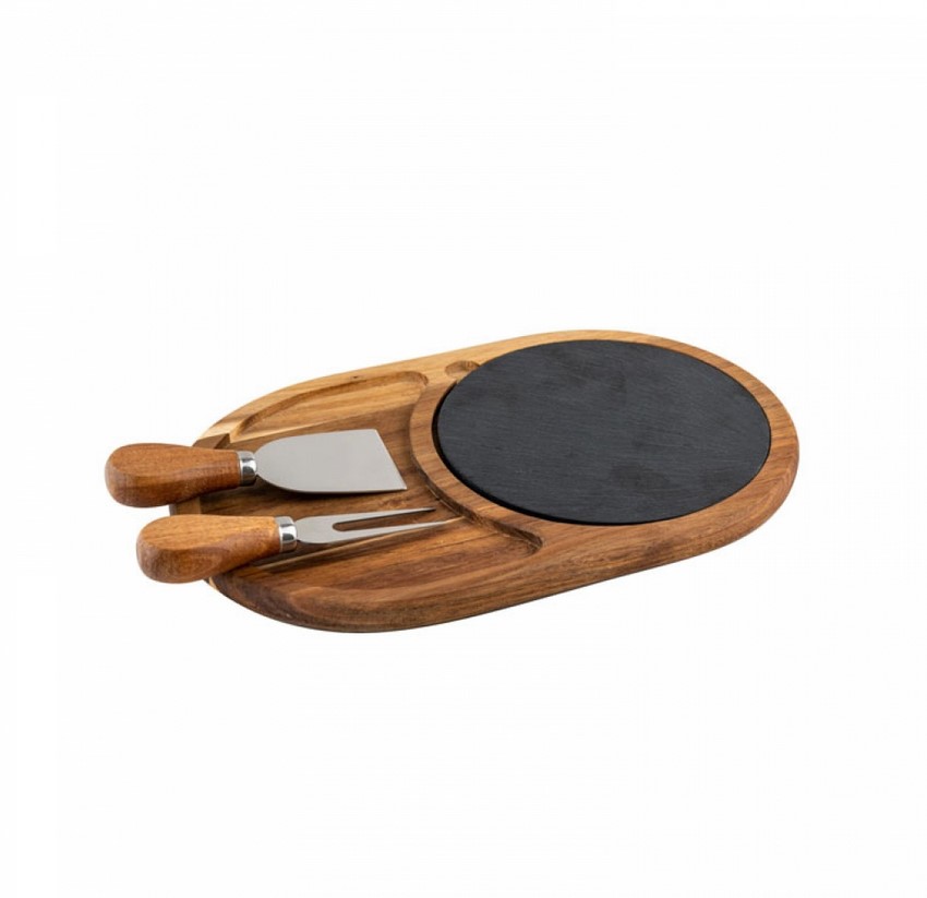Комплект овална дъска от бамбук с камък и 2 ножчета за сирена BRIO Bamboo, 28.5х17.8х1.5см