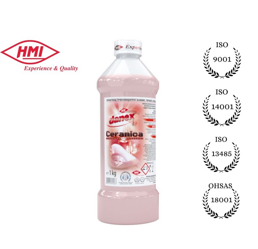 Концентрат за фаянс, теракота, мозайка, санитария, хром-никел и други киселиноустойчиви повърхности HMI® DANEX CERAMICA 1 кг.