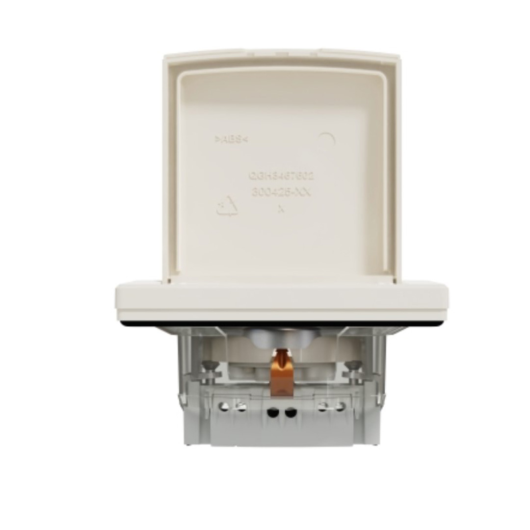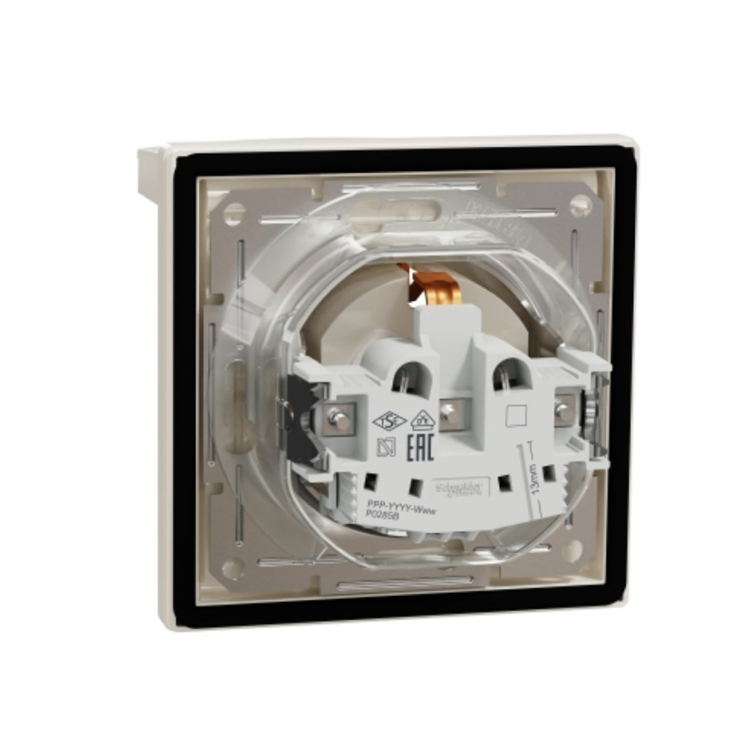 Schneider контакт Шуко с капак и защита IP44. Конфигурация на полюсите на излазите 2P + E с капаци. Ниво на мощност 3680 W. Номинален ток 16 A при 250 V AC. ВхШхД: 83х83х48 мм. Цвят крем.