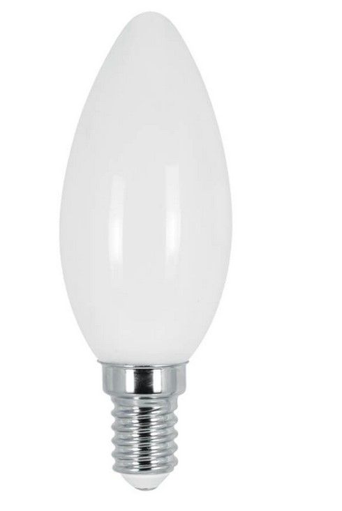 LED лампа 4W, E14, 230V, 3000K, филамент, опал C35. Опаловата стъклена колба на FLICK OPAL LED допринася за това лампите да приличат на стандартна лампа с нажежаема жичка, но в същото време те притежават предимствата на типичната LED филамент лампа – висок светлинен добив, ниска консумация на енергия и равномерна осветеност в ъгъл 360°.