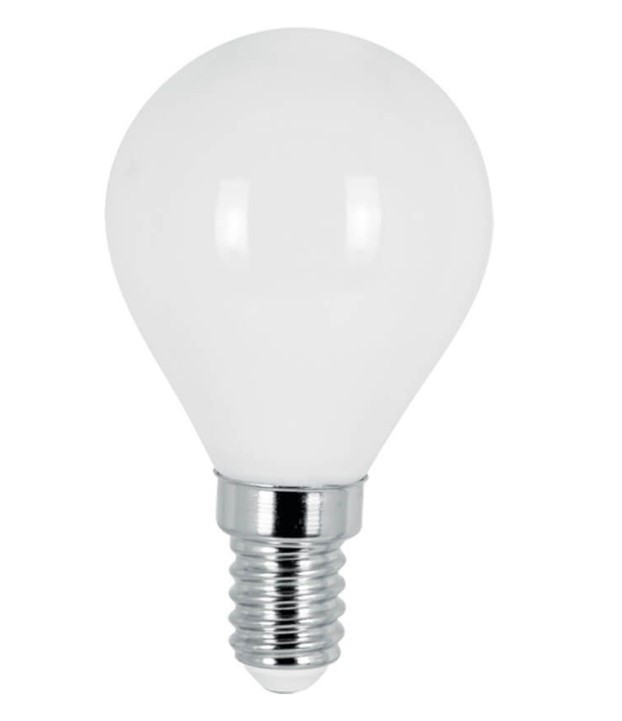 LED лампа 4W, E14, 230V, 3000K, филамент, опал G45. Опаловата стъклена колба на FLICK OPAL LED допринася за това лампите да приличат на стандартна лампа с нажежаема жичка, но в същото време те притежават предимствата на типичната LED филамент лампа – висок светлинен добив, ниска консумация на енергия и равномерна осветеност в ъгъл 360°.