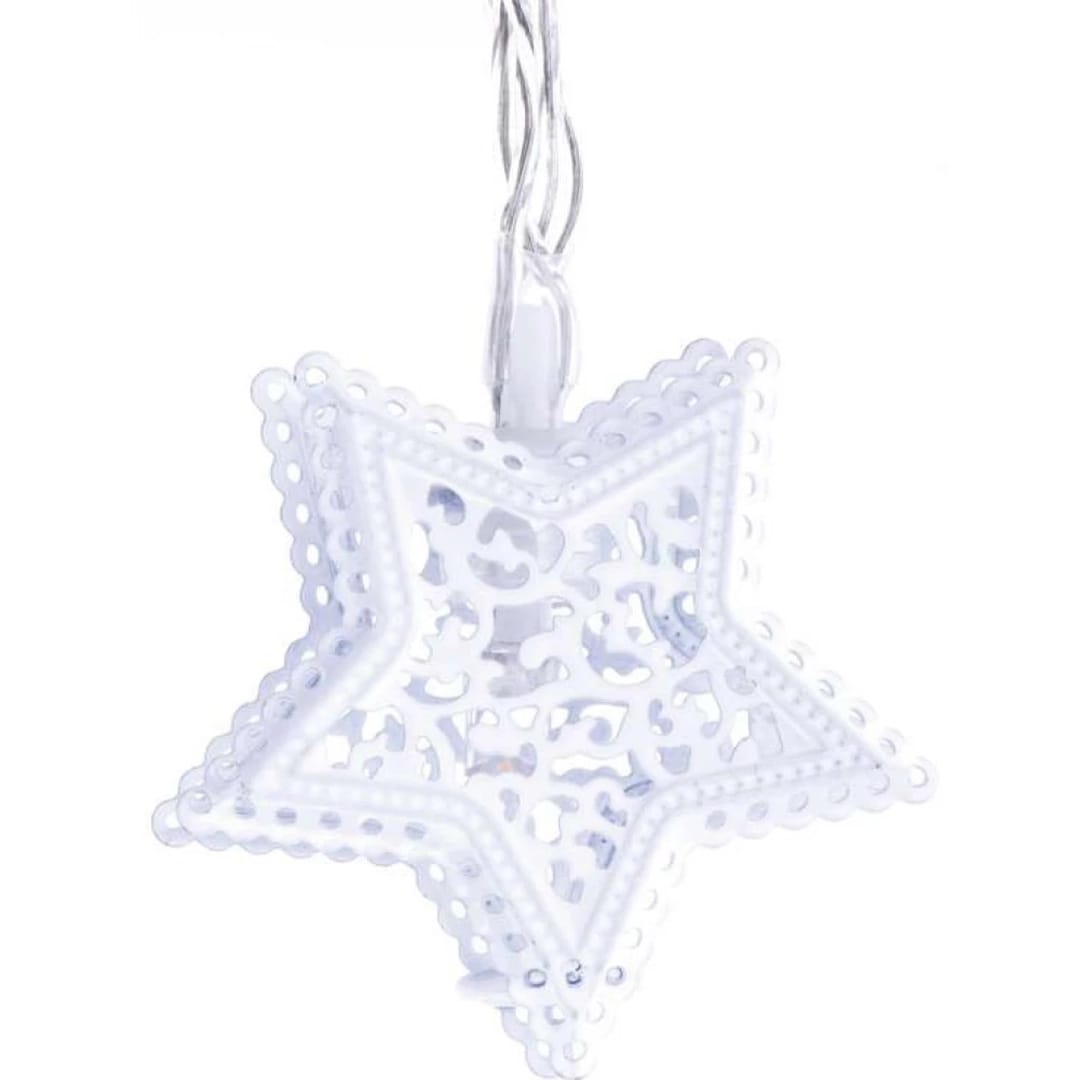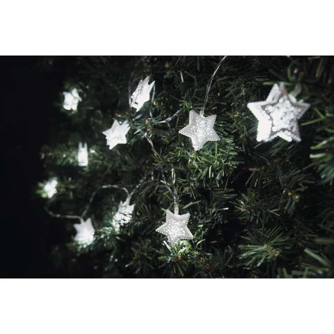 Коледен ГАРЛАНД сребърна звезда 10 LED 3 × AA таймер, топло бяло