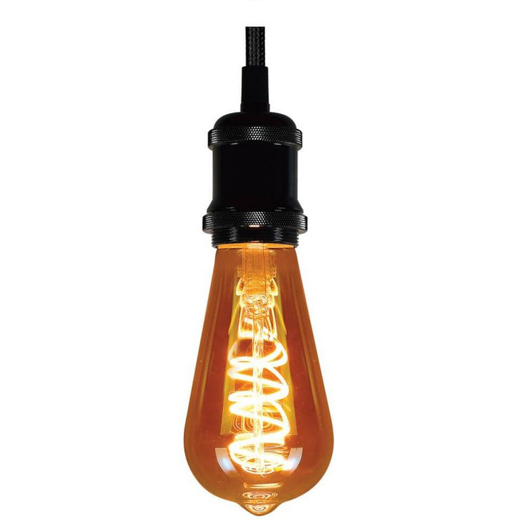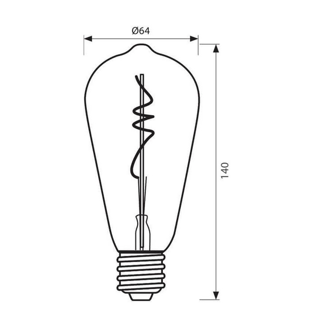 LED филамент лампа, 4W, 300 lm, 2200K, E27, Ø64 x 165 mm, 360°, 25 000 ч, димира се. FLICK DECO LED е серия винтидж LED лампи с ефектно огънати филаменти и кехлибарен цвят на колбите.