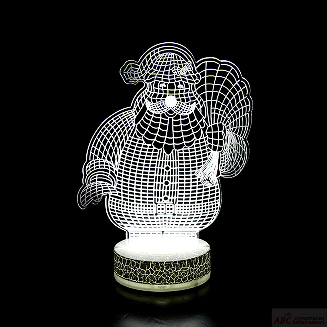 3D нощна лампа със захранващ кабел. Височина 20-23 см. Размер на поставката ф98х40 мм. 85-265 V.