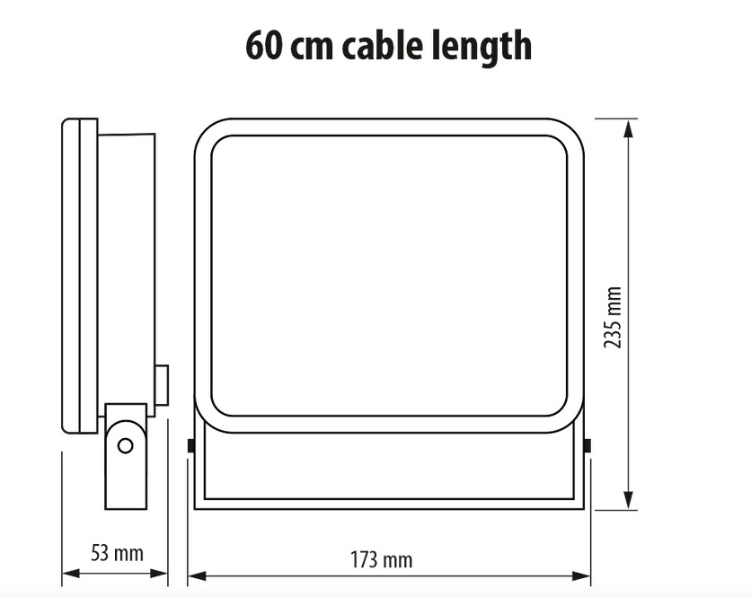 бял захранващ кабел с голяма дължина (60 сантиметра) и щуцер, разположен на гърба на корпуса, позволяват лесен и бърз монтаж;