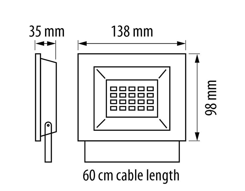 Прожекторът е снабден с дълъг – 60 см – черен захранващ кабел;