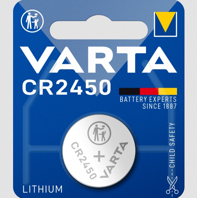 VARTA Litium CR 2450 – Литиева батерия за широка гама от дистанционни управления, фитнес устройства, медицински приложения, камери, часовници, електронни калкулатори и много други. Фокусиранa върху изискванията на съвременните електронни устройства, VARTA предлага една от най-пълните гами от батерии за електроника на пазара. Гамата от продукти се състои от литиеви, сребърни и алкални батерии, за да ви даде оптимален избор.
