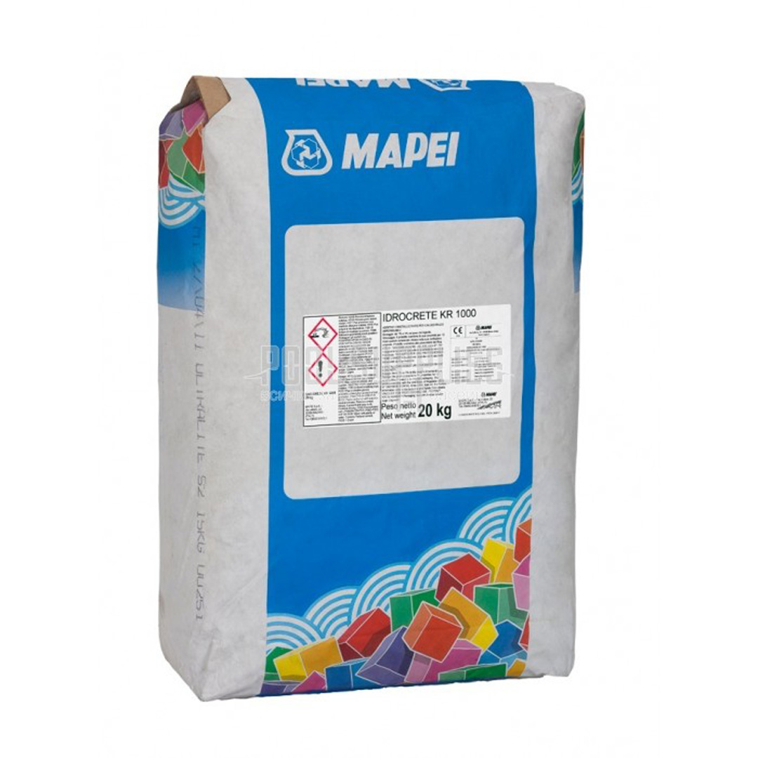 Добавка водоплътност с кристализиращ ефект за бетон Мапей Idrocrete KR 1000, за повишаване водоплътността на бетон и затваряща възникнали микропукнатини с размер до 0.4 мм, през които преминава вода, при добавяне към бетоновата смес, намаляват пропускливостта на втвърдения бетон и реагира с водата през цялата продължителност на експлоатационния живот на бетона, може да се използва за създаване на бетон, който е устойчив на агресивни среди торба 20 кг