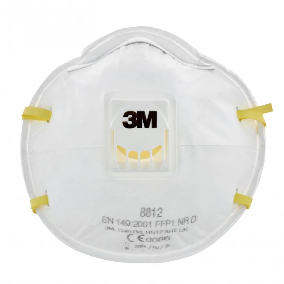 3M™ 8812 Респираторна маска за еднократна употреба с клапа Р1 против прах и други фини частици. Клас на защита FFP1. Има лека и комфортна конструкция, осигуряваща ефективна и хигиенична защита. Предоставя ниско дихателно съпротивление. Отлично приляга към различните форми лица, благодарение на еластичните ленти и мека формова част за носа, изработена от алуминий. Има дихателен клапан, улесняващ дишането и намаляващ задържането на топлина, влага и въглероден двуокис.