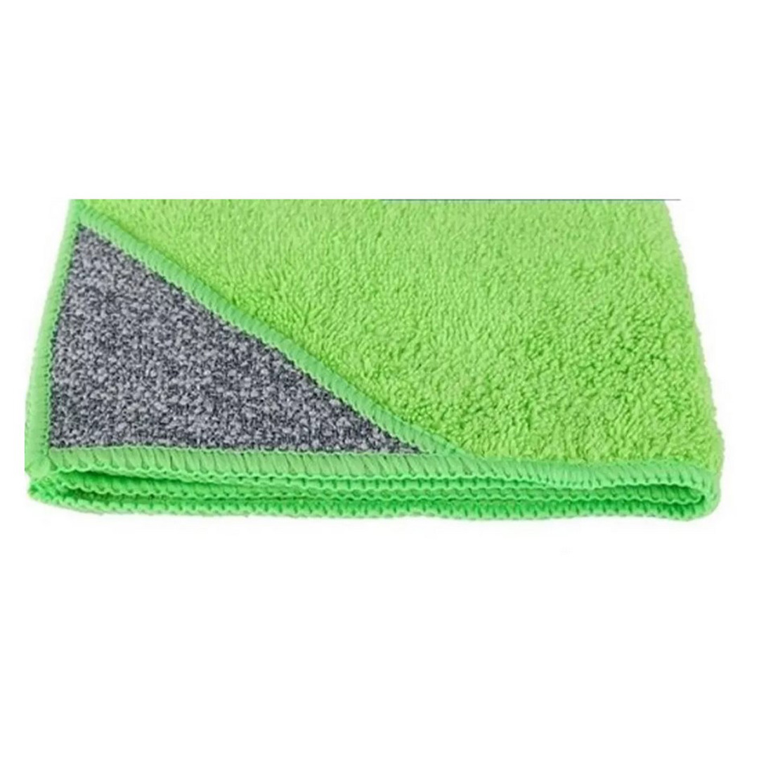 Висококачествена универсална микрофибърна кърпа с абразивна част, за по-упоритите места. Почиства идеално всякакъв вид кухненски повърхности, бани, бяла техника, повърхности от неръждаема стомана и други. Използват се както за сухо, така и за мокро почистване. Могат да се перат в пералня в температура до 60 градуса.Размер 30*32 см.100% микрофибър