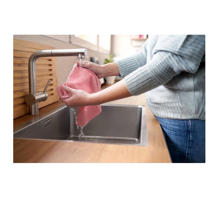Микрофибърната кърпа Vileda Actifibre Soft притежава отлични почистващи свойства. Подходяща e за почистване на всякакви повърхности в кухнята. Vileda Actifibre Soft почиства и изсушава повърхностите само с едно забърсване. Изработена е от 100% микрофибърен текстил с полиуретаново покритие за максимално почистване и абсорбация. Меката кърпа Actifibre абсорбира и задържа перфектно течностите, оставяйки повърхността чиста и без ивици и петна. Специалното полиуретаново покритие прави кърпата много лесна за изплакване. Микрофибърната кърпа Vileda Actifibre Soft е мека и деликатна на допир, както суха, така и мокра.