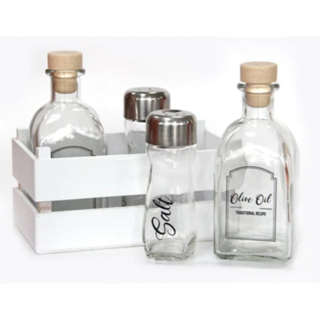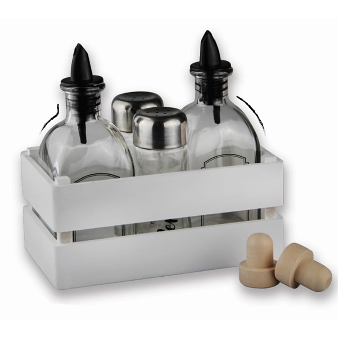 Стъклен оливерник, В дървена касетка, 5 части, Бял