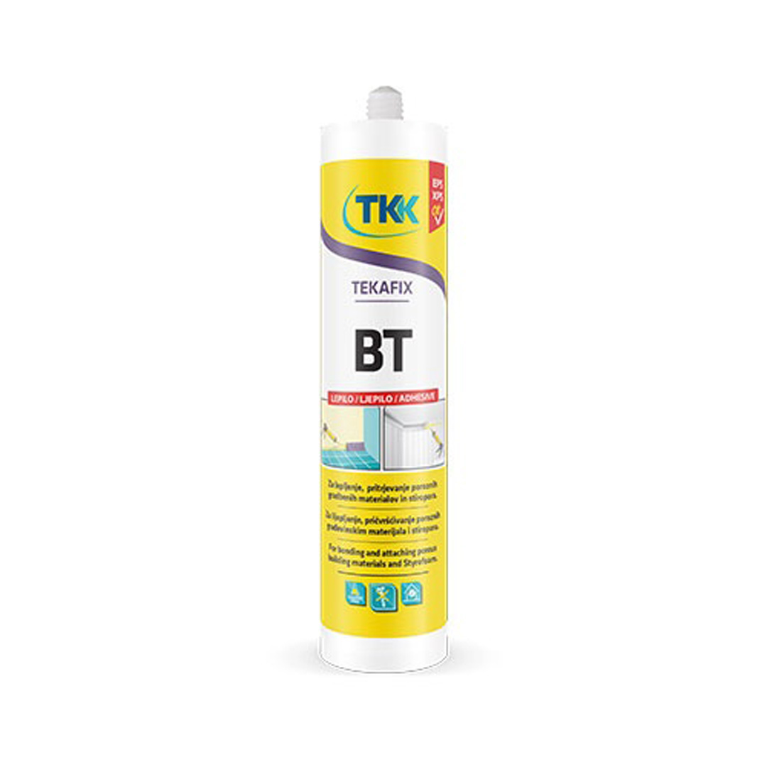 Тekafiks BT строително лепило на основа акрилна дисперсия е подходящо за залепяне на различни порьозни материали, без да е необходима употребата на инструменти.