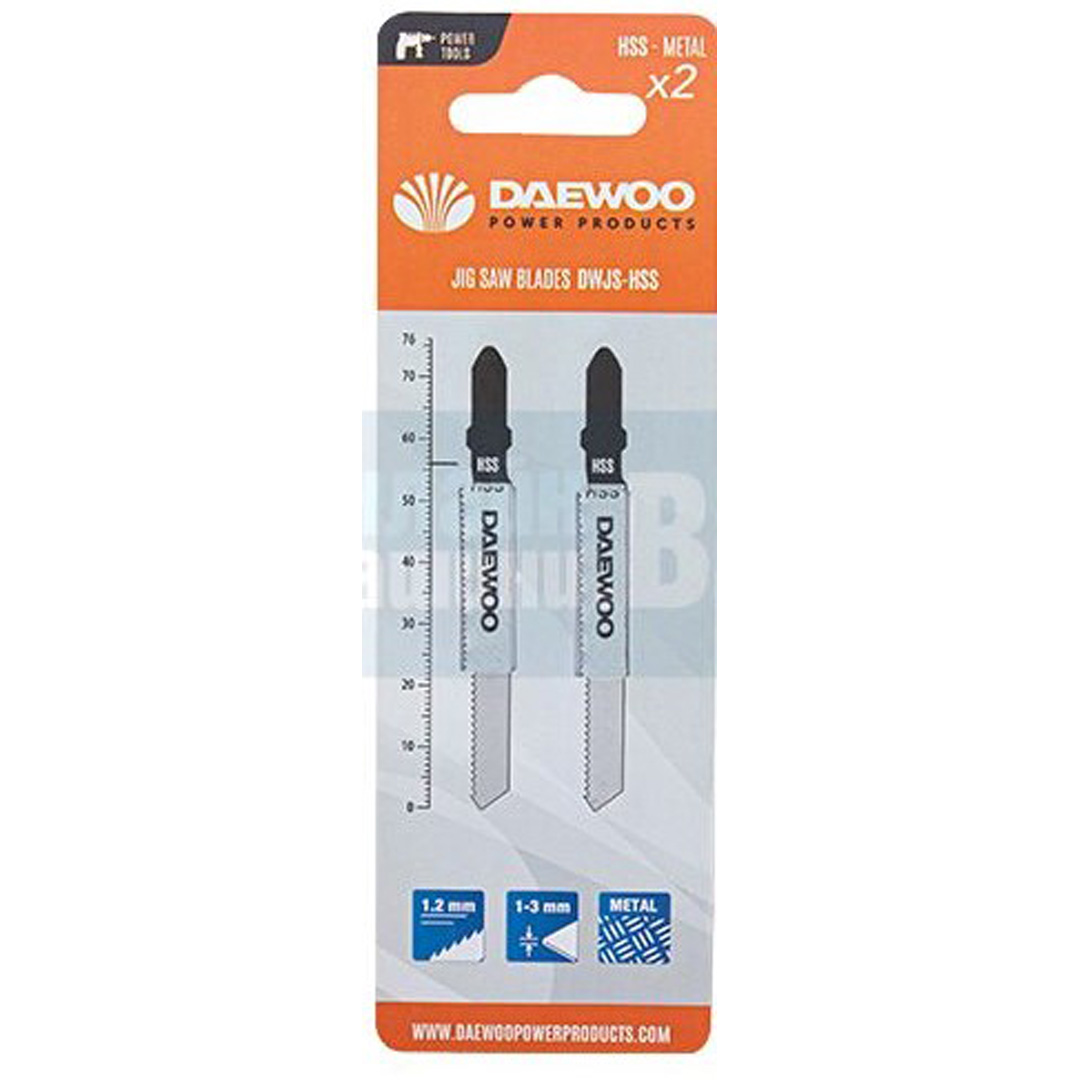 Ножчета за метал DAEWOO DWJS-HSS са изработени от високоскоростна стомана. Използват се за рязане на метал с висока твърдост. Ножчетата са 2 броя в опаковка и са предназначени за прободен трион.