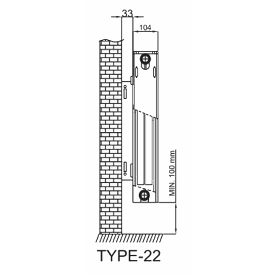 Продуктът, който разглеждате представлява панелен радиатор, от така наречения модел радиатори тип 22 (PKKP). Радиатора е изработен от висококачествени стоманени панели свързани помежду си и топлоотдаващи тела – конвектори. Радиатор тип 22 е двупанелно изпълнение с двоен конвектор, разположен от вътрешната страна на панела цялата му площ. Тези радиатори за парно, с марка Comrad, са снабдени с фабрично монтирана декоративна решетка и странични панели. Стоманените панелни радиатори са евтини радиатори с висока ефективност и издръжливост, дълъг срок на експлоатация и атрактивни цени. Панелните радиатори се предлагат на значително по-ниски цени от алуминиевите радиатори. Предназначени са да се монтират към локални и централни отоплителни системи, а свързването на панелния радиатор към отоплителната система може да бъде ляво или дясно.