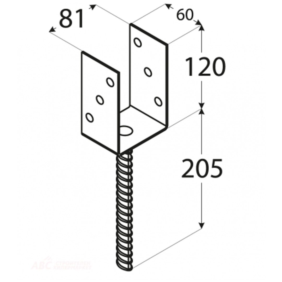 Основа за греда за бетон – PS. U образна основа, улесняваща захващането на дървени елементи към бетон. Материал S235 и сребърна галванизация. Размери 80/325/120 мм.