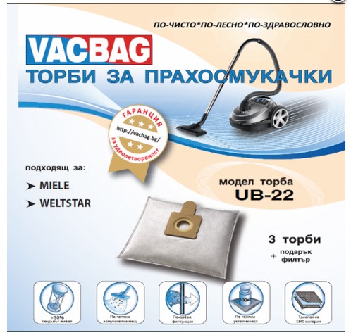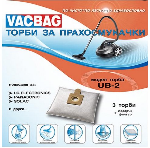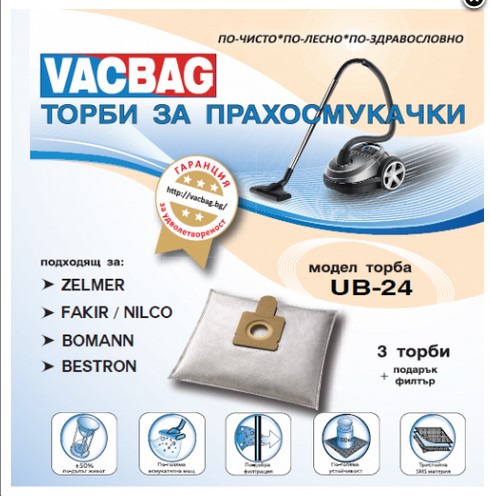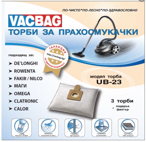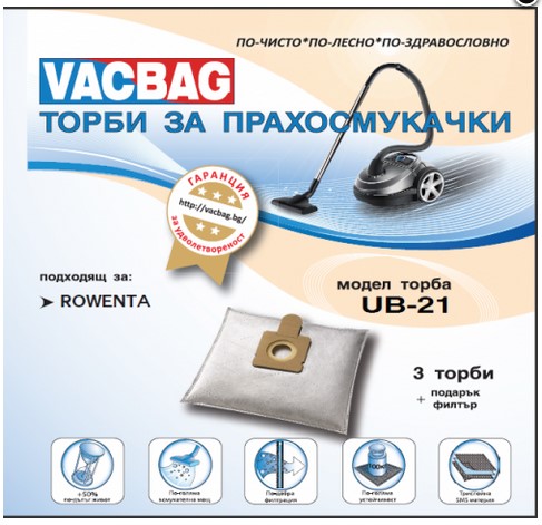 Торбички за прахосмукачки UB25 3 бр. пакет VACBAG 4.50 € /ПАК (8.80 лв.)