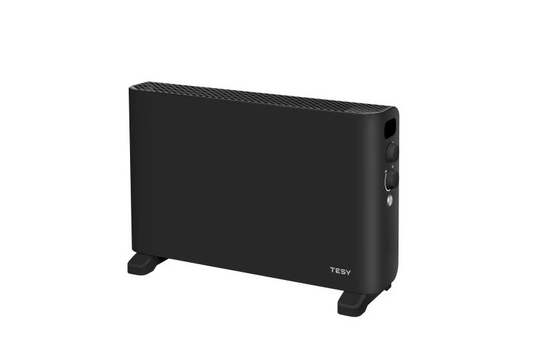 Подов свободностоящ конвектор TESY CN 207 ZF B с черен лицев панел и номинална мощност 2000W. Оборудван с регулируем термостат, нагревател от съпротивителен проводник, светлинен индикатор и сензорен бутон за включване и изключване на турбовентилатора. Предлага 4 режима на работа (4 степени на мощност): 1000W/2000W/1000w+вентилатор/2000W+вентилатор. Конвекторът е с функции за сигурност: защита срещу преобръщане, прегряване и замръзване. Конвкеторът не е подходящ за отопления на баня.