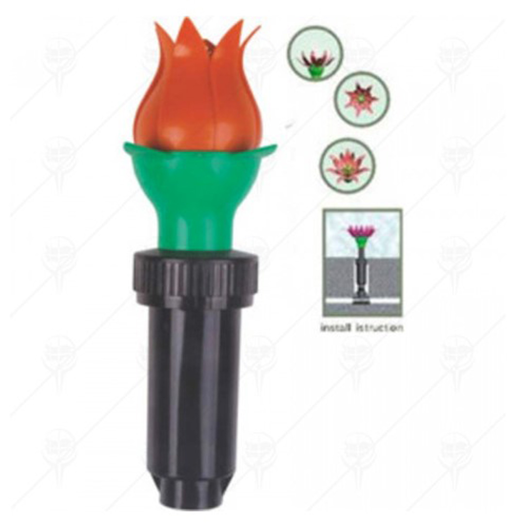 Поливник за подземна система с формата на лале. При поливане лалето се разтваря.