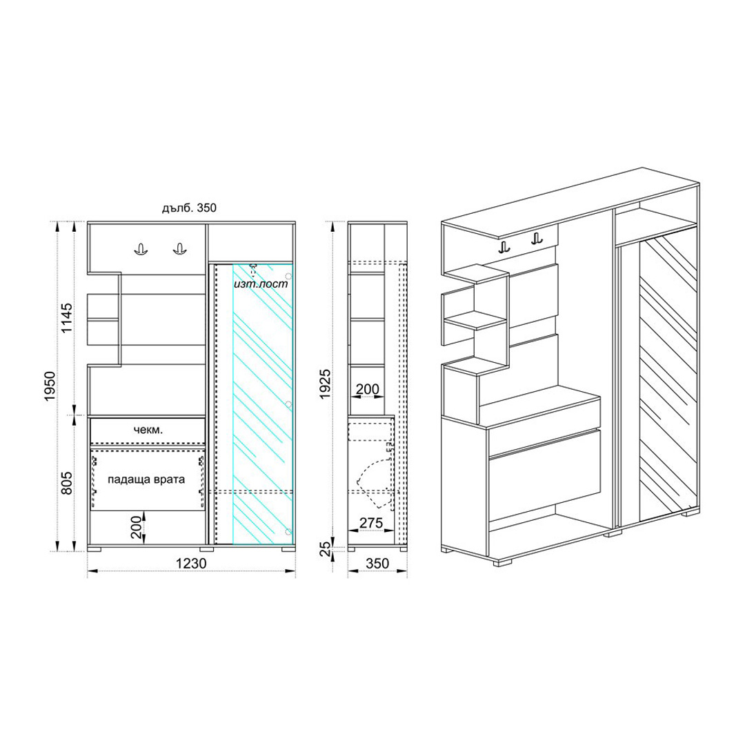 Портманто СИТИ 4000 се състои от – пано за закачалки, шкаф за обувки и гардероб с изтеглящ лост за закачалки.
