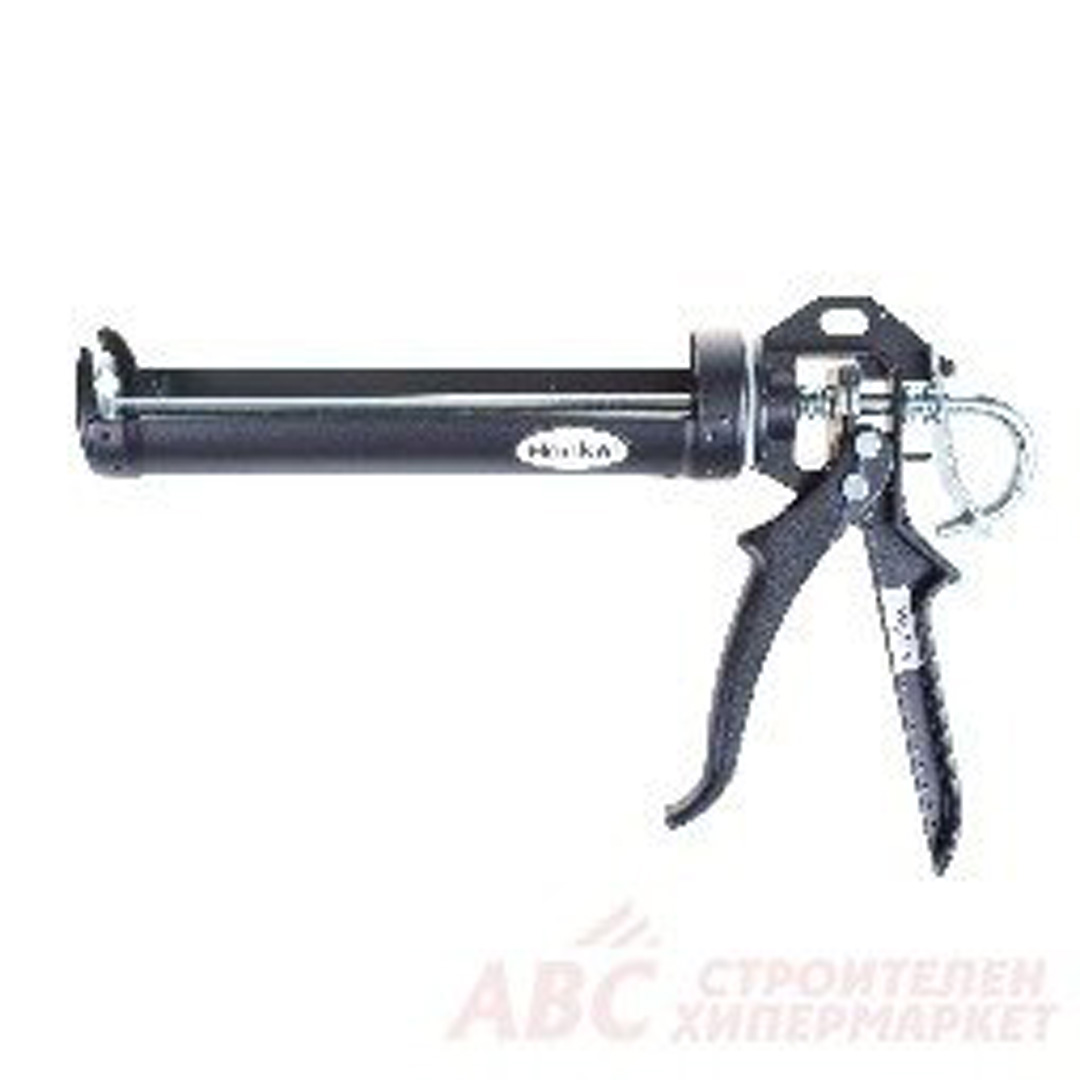 Професионален пистолет от Хенкел за силикони, уплътнители и монтажни лепила H16. С двойнозаключващ изтласкващ механизъм.