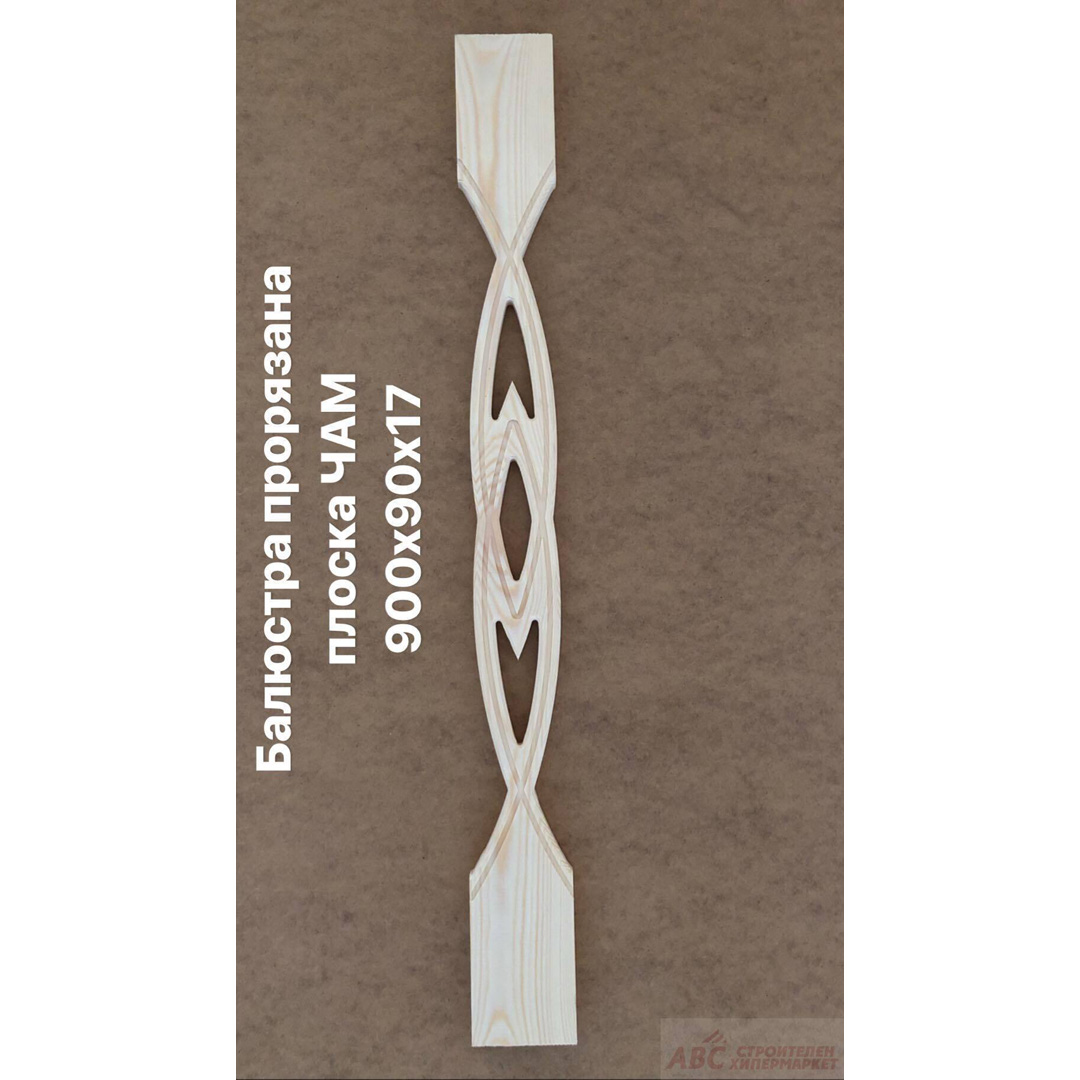 Профил балюстра прорязана, плоска. Материал: чам. Размери: 900х90х17 мм.