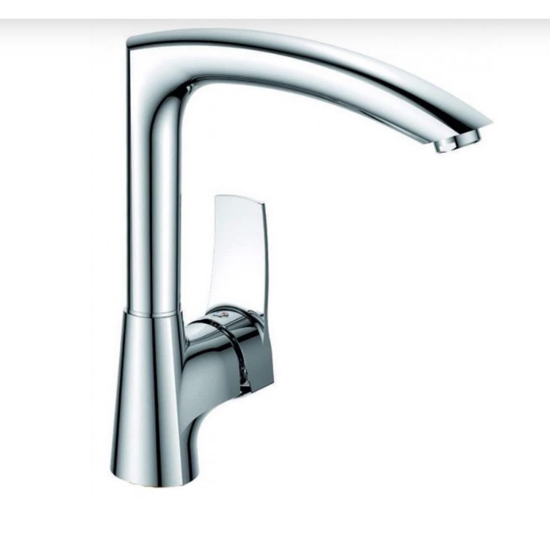 Описание Месингов смесител стоящ за кухненски умивалник – висок С керамичен затварящ механизъм 40мм