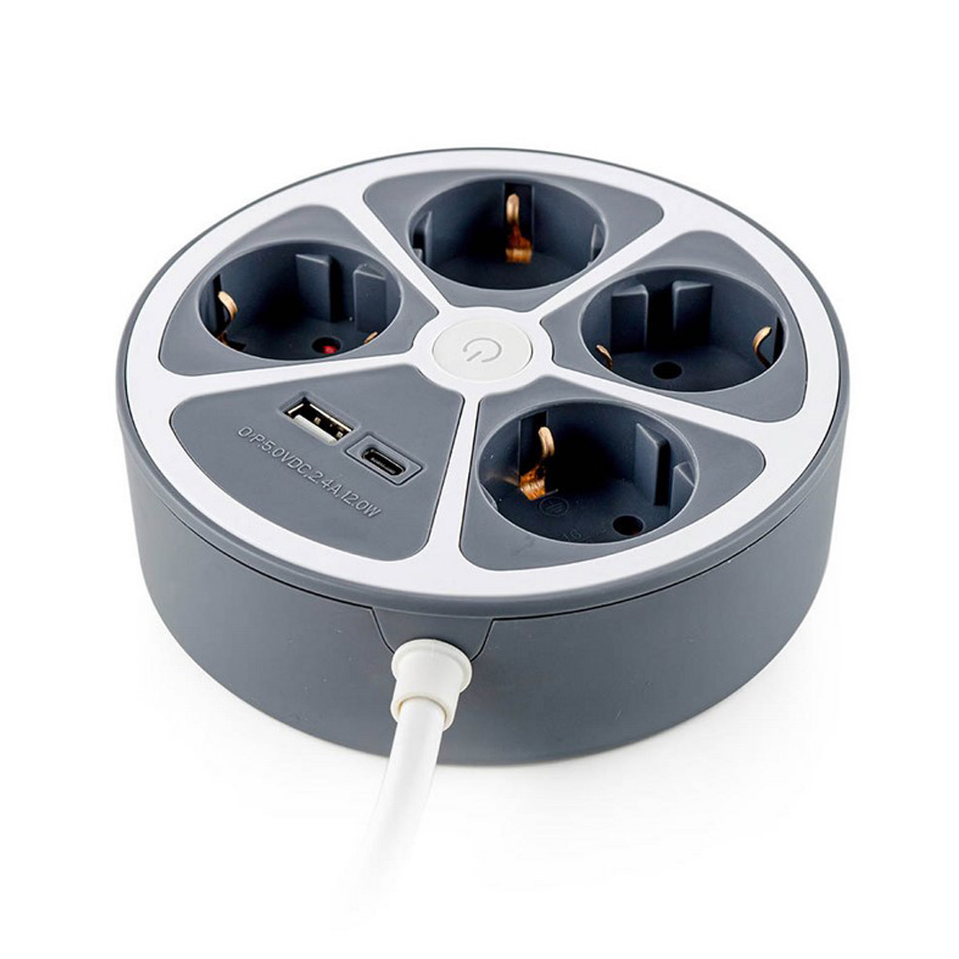 Раклонител кръг с ключ, 4 гн.,2X USB порта тип А и C Кабел: H05VV-F , 3G*1.4mm2; 1.4 m Напрежение: 16A 250V~, Max. 3680W 230V~ 50Hz, IP20 USB изход: 5.0VDC, 2.4A, 12.0W С детска защита