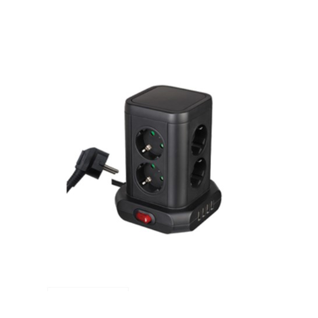 Разклонител „Кула’ ‘с 8 гнезда 4USB,5V ключ и кабел 1.4M/KN41091