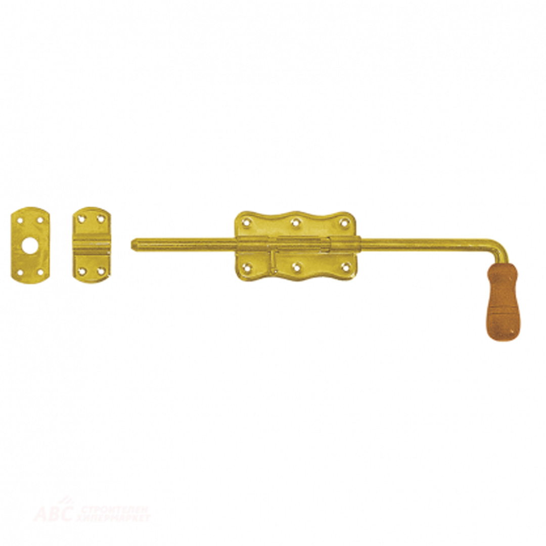 Резе с дървена дръжка за порти с отвор за катинар WRG 120. Размери 120*60*1.3 мм.