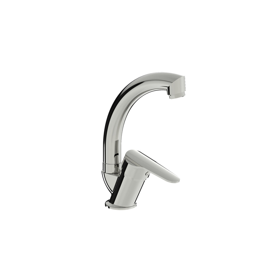 Смесител Fayans Enjoy, за умивалник, с въртящ се тръбен чучур, с изпразнител, месинг – Завъртане на чучур: 360 °; Тип дебит: Регулируем; Тип монтиране: На плот; Мивка; Отвори за монтиране на смесител: 1; Диаметър отвор: 47 мм; Тип патрон: Керамичен; Височина: 228 мм; Дължина чучур: 157 мм;