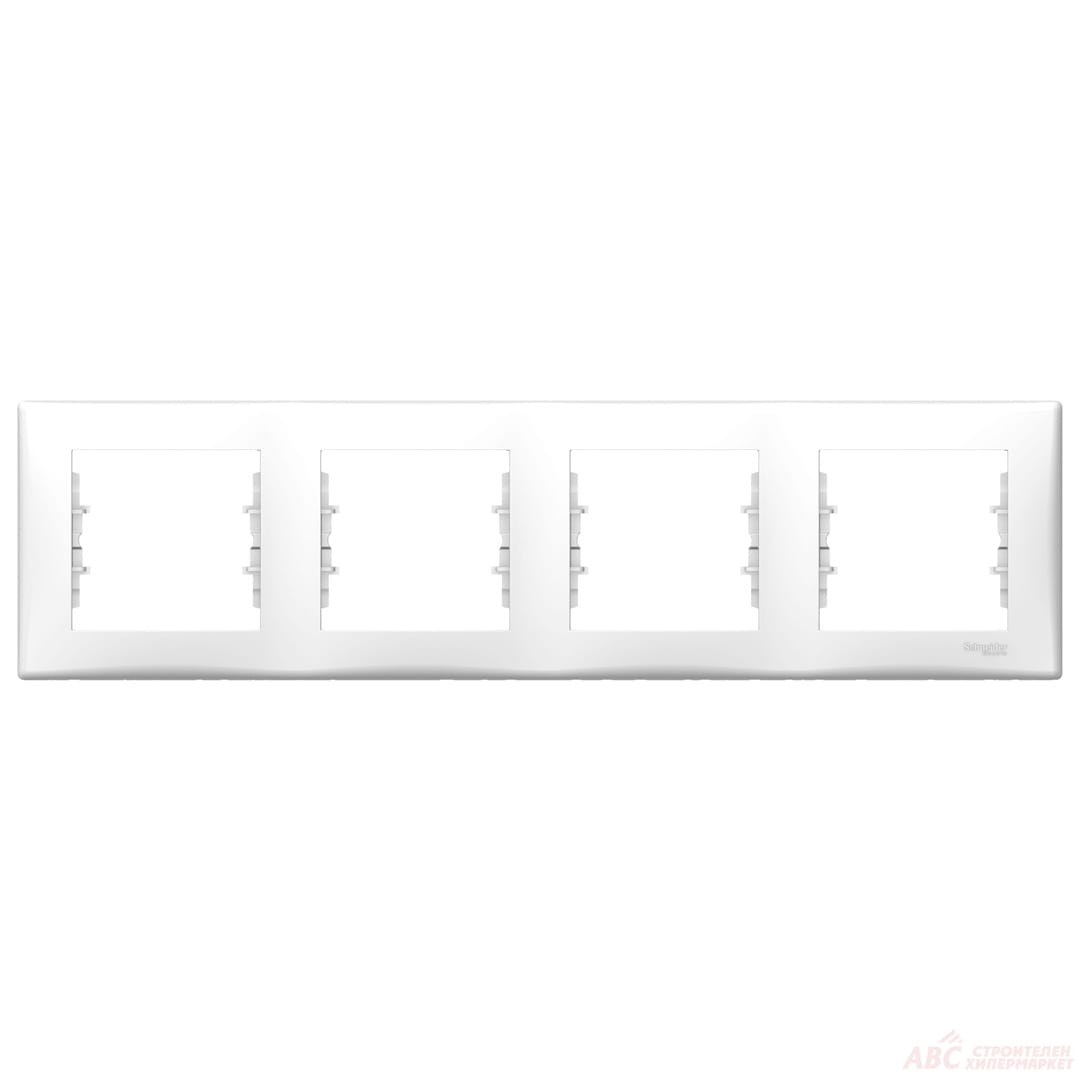 Schneider декоративна рамка елемента – четворен контактен излаз. ВхШхД:80х299х7 мм. Цвят бял.