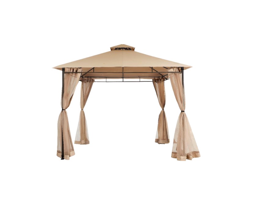 Градинска сгъваема шатра със стоманена конструкция, която позволява лесно сглобяване и разглобяване, и полиестрно платнище. Подходяща за мероприятия на открито в градини и дворове. Лесна и удобна за съхранение и транспортиране благодарение на включения в комплекта калъф.