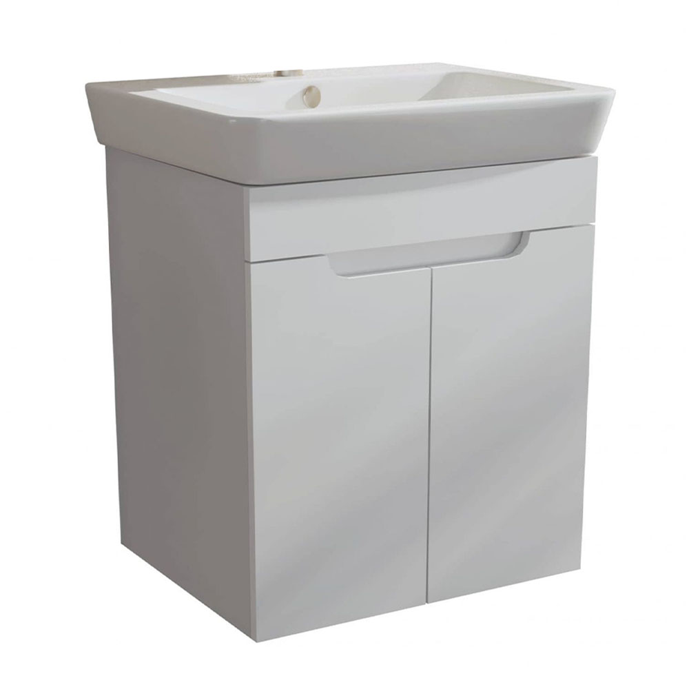 Долен шкаф за баня Caserta с размер 60cm с две врати и порцеланов умивалник. Мебелите от серията се отличават с изчистен стил и са изработени от висококачествен PVC материал.