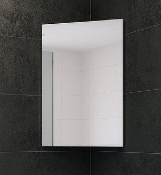 Горен ъглов огледален шкаф изработен от водоустойчиво PVC с дебелина 16мм. с бяло гланцово покритие. Моделът е с една вратичка с опция ляво и дясно отваряне, един подвижен рафт и панти с меко затваряне. Размери: 42,4*22,8*65см.
