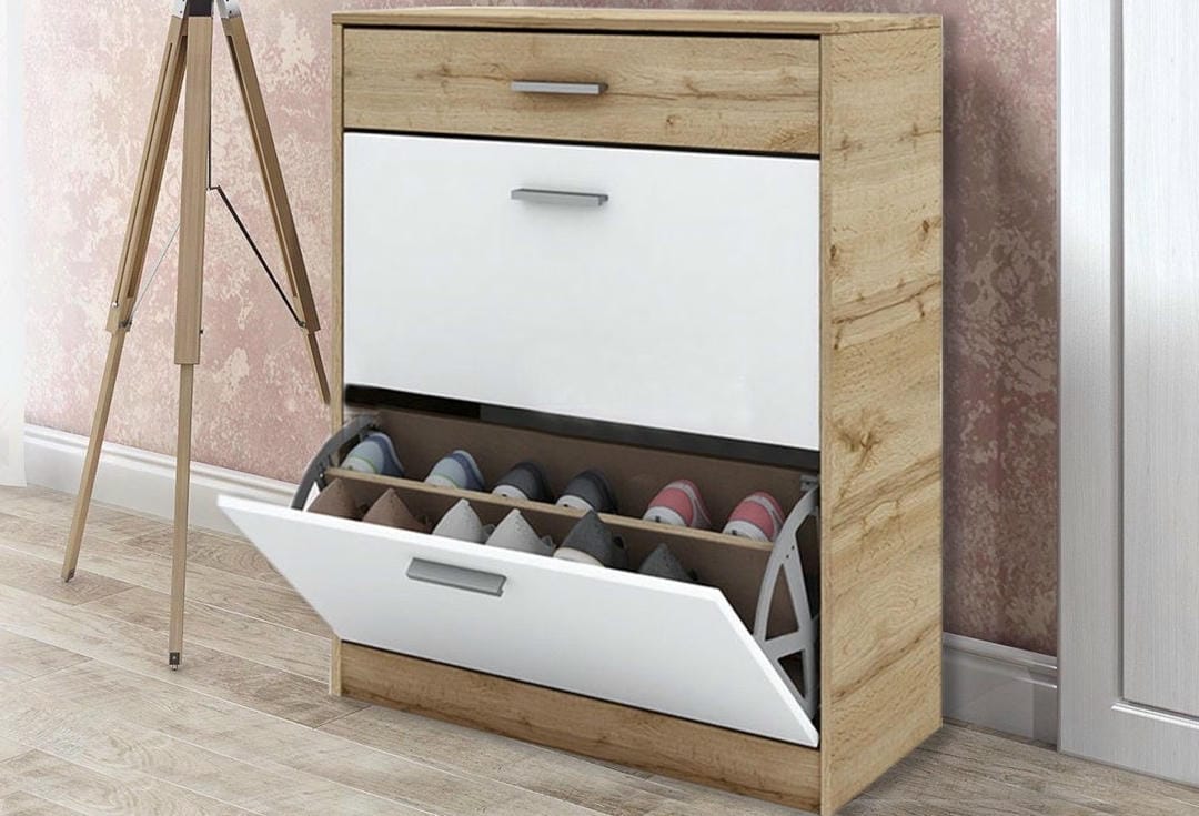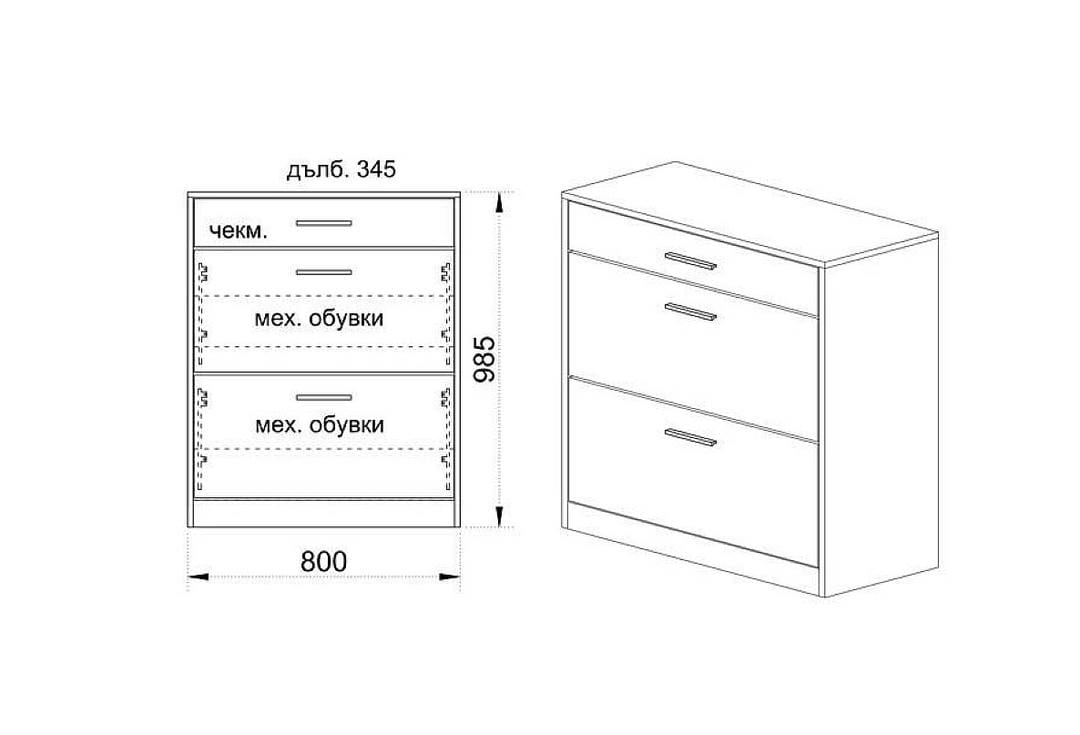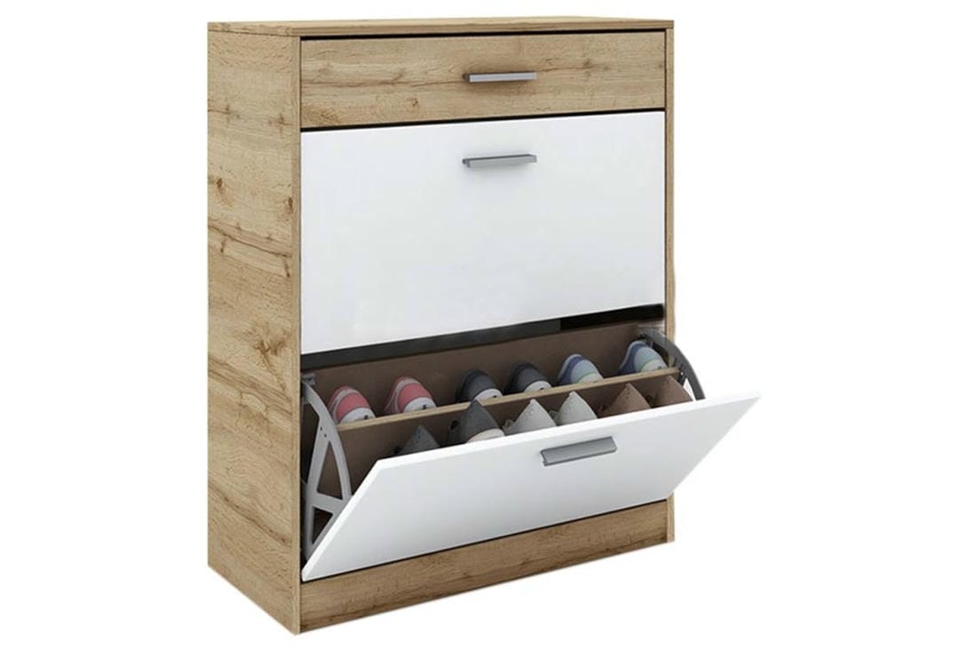Шкаф за обувки City 4044 с две врати и чекмедже, с двуредов механизъм за обувки.
