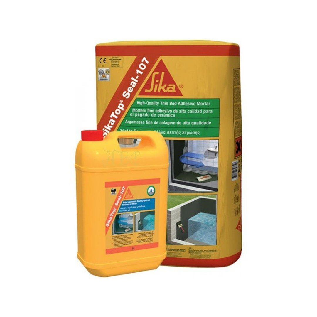 SikaTop Seal-107 е двукомпонентен полимер-модифициран хидроизолационен циментов разтвор. Състои се от суха циментова смес в опаковка от 20 кг разтвор и течен полимер 5 кг туба. Предимство е лесното нанасяне с четка или мистрия, без допълнително добавяне на вода. Може да се нанася ръчно или чрез впръскване. Приложение: за външна и вътрешна хидроизолация и защита от влага на бетон, циментови мазилки и зидарии. Използва се и за хидроизолация на основи и сутерени.