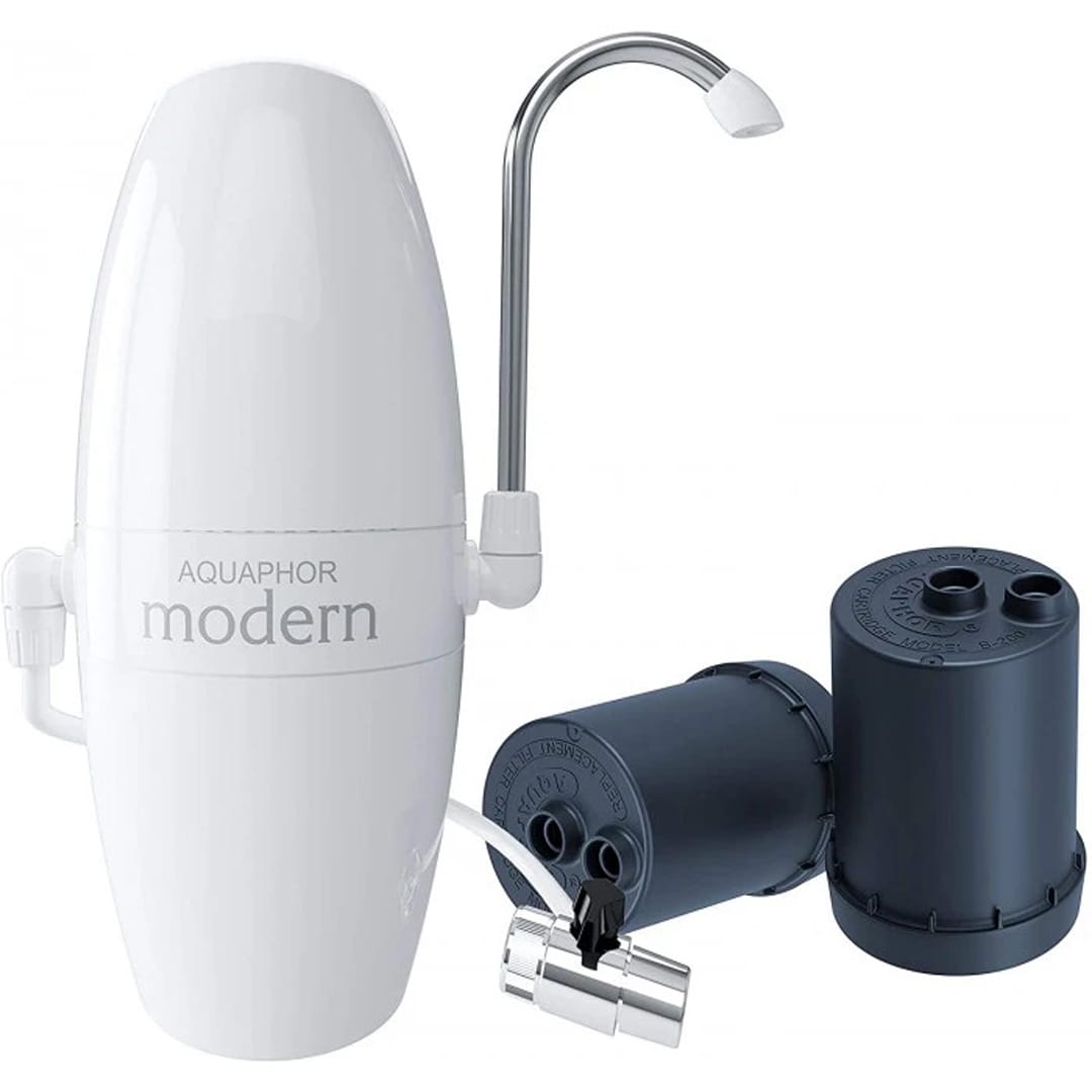 Филтърна система за пречистване на вода Aquaphor Modern притежава компактен филтър със съвременен и стилен дизайн, който надеждно пречиства вредните примеси. Разполага с максималната производителност, позволена за този тип продукти. Включва се към крана, само когато е необходимо.