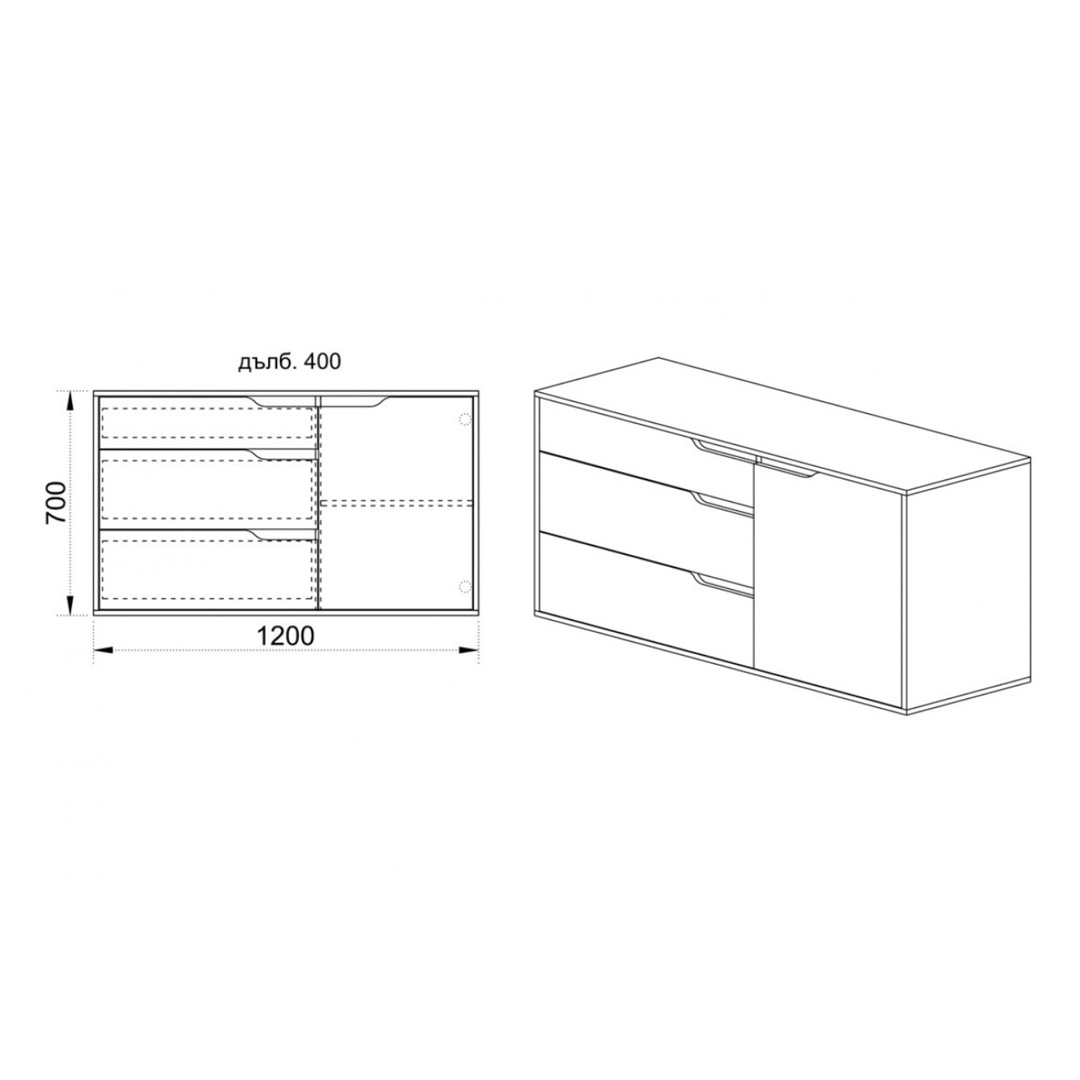 Предимства: ✓ 3 чекмеджета ✓ затворен шкаф ✓ компактен и практичен ✓ механизъм за плавно затваряне ✓ модерен декор ✓ качествена изработка ✓ 16 мм ЛПДЧ