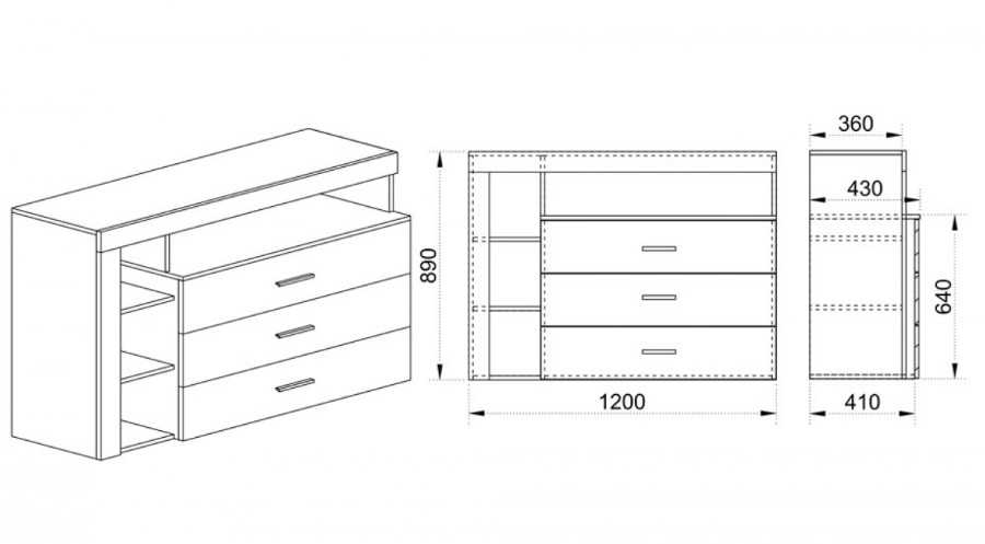 Размери: широчина 120 см / дълбочина 43 см / височина 89,5 см.
