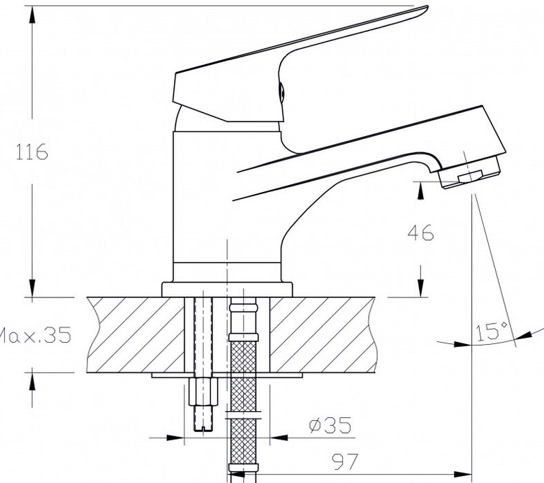 Месингов смесители с керамичен затварящ механизъм 35 мм къс чучур, една ръковхатка. Стоящ монтаж , за умивалник